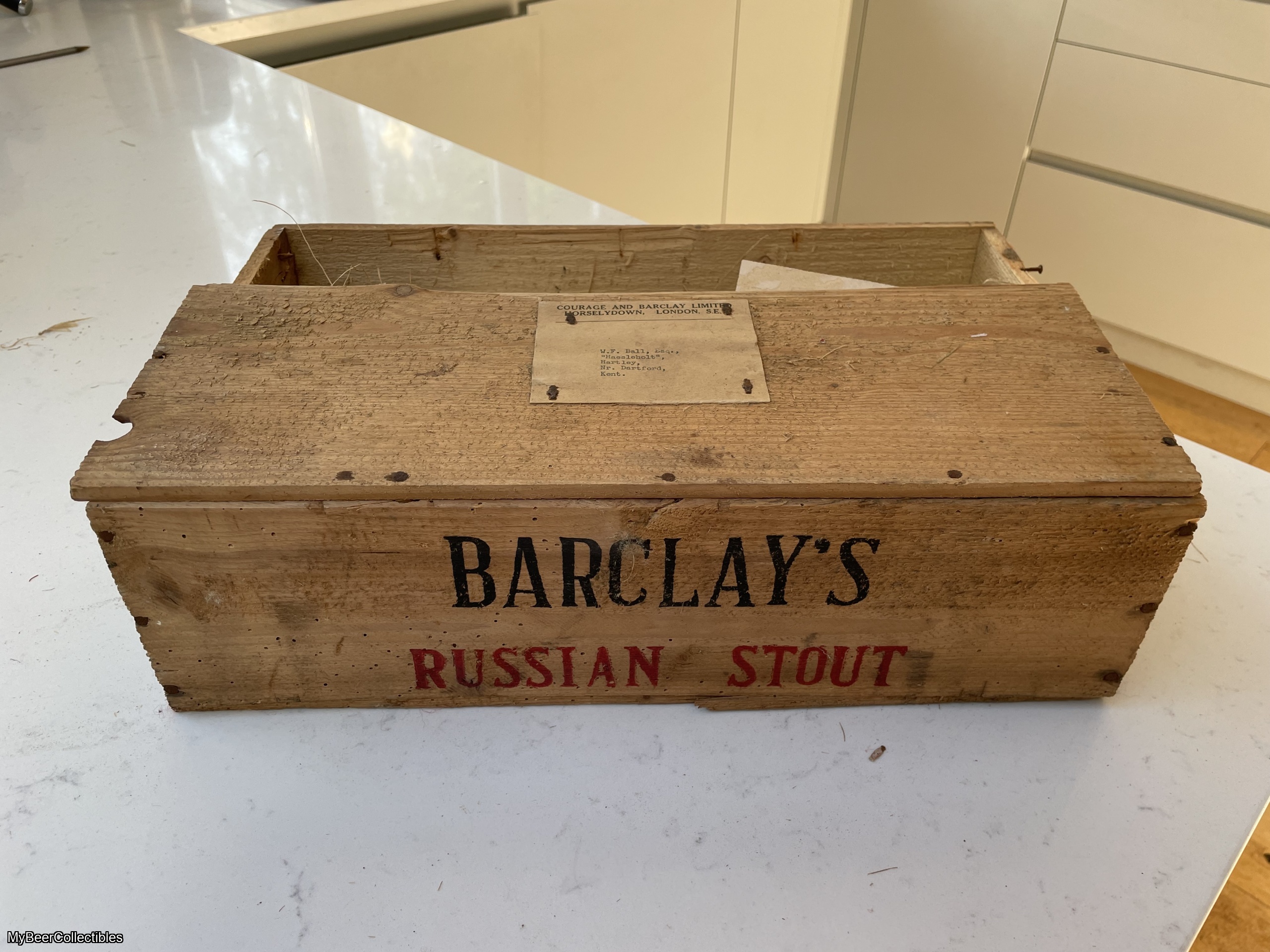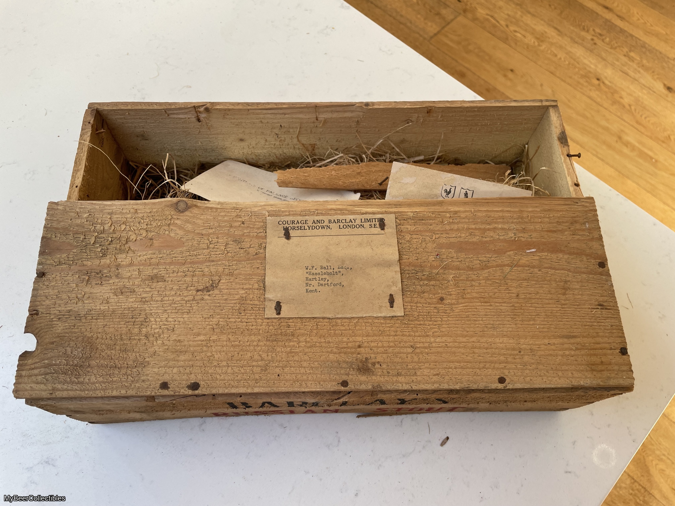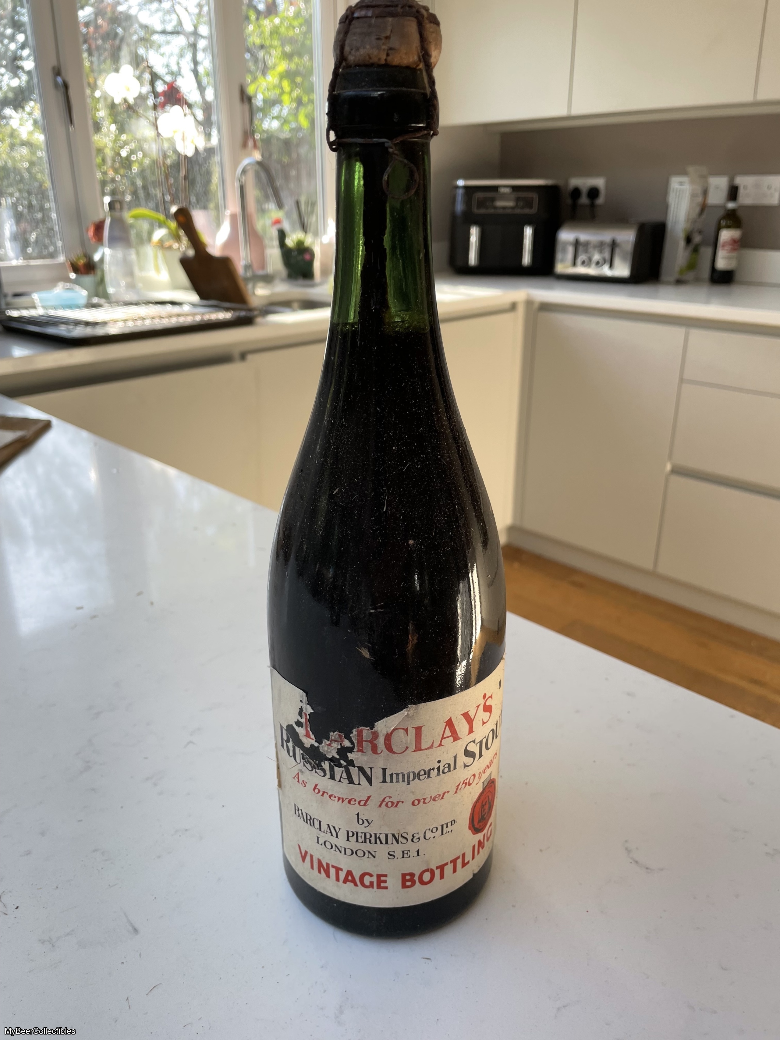 A 750ml bottle of Barclay’s Russian Imperial Stout dating from 1947 / 1948In excellent condition with just a little label damage. It will be supplied with its original straw protector, and, if wanted I will supply the original (but incomplete) wooden crate FREE OF CHARGE (see last two photographs). This would however require an increase in shipping charge.