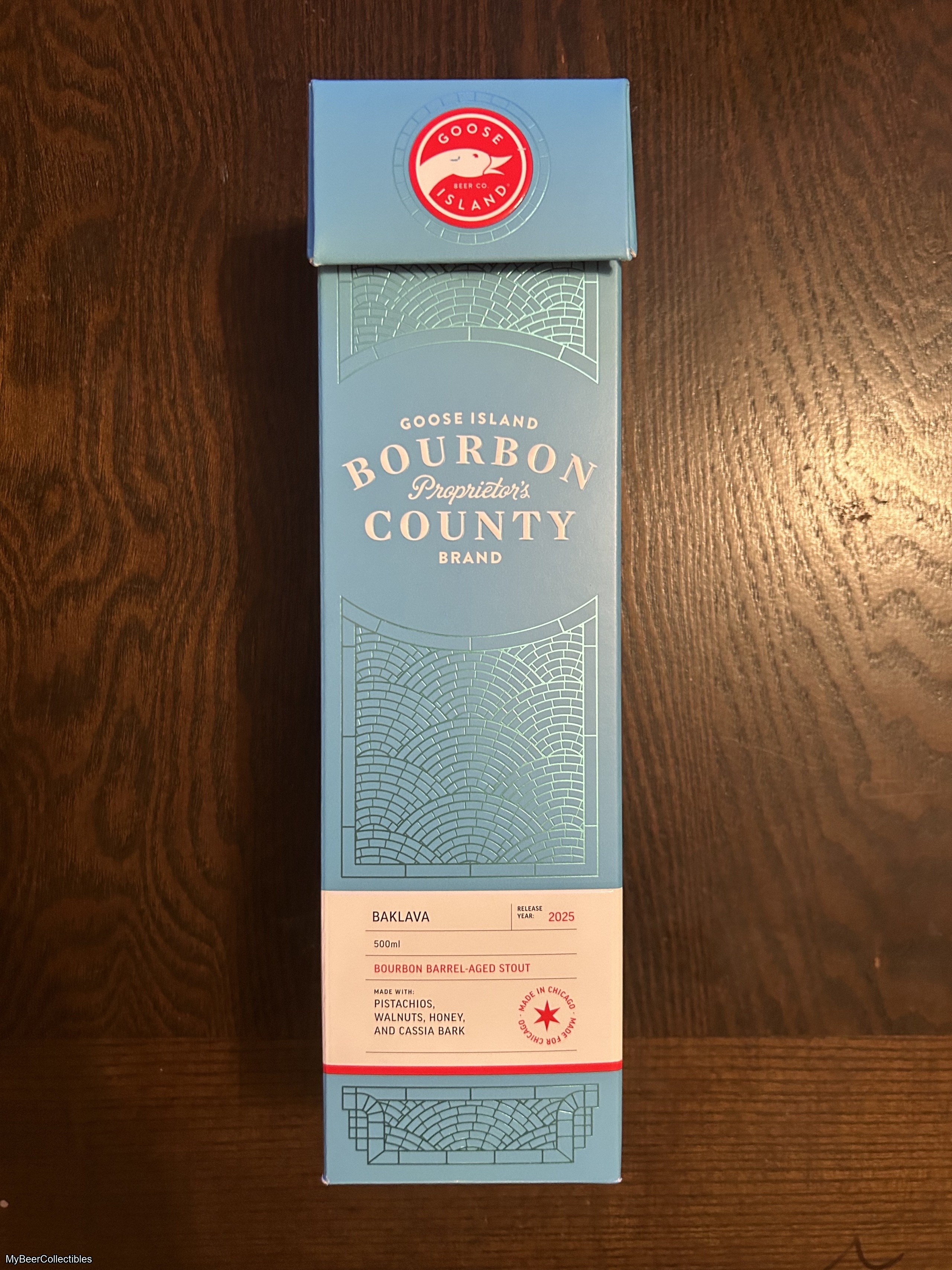 Inspired by the beehives on her aunt’s Rhode Island homestead, Goose Island brewer Colby Magratten was immediately drawn to the flavors of crisp and nutty homemade baklava—an idea she knew would be perfect for 2025 Bourbon County Brand Proprietor’s Stout. First aged in bourbon barrels and then finished with walnuts, pistachios, cassia bark, and honey, each ingredient was carefully chosen to complement the aged imperial stout: toasted nuts highlight its warm, nutty character; cinnamon enhances the spice of the bourbon barrel; and rich honey deepens the stout’s caramelized body. This stout boasts a dessert-inspired expression with layers of comforting warmth, deeply roasted nuts, and a subtly sweet finish—crafted with love for, and available only in, the city Goose Island calls home: Chicago.