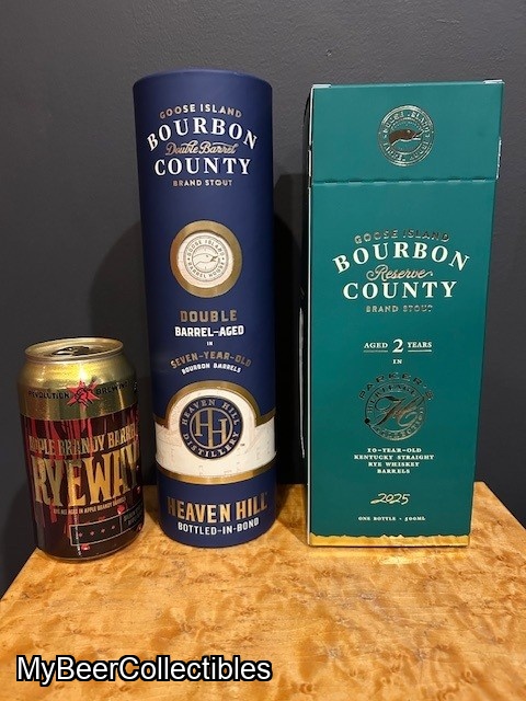 One unopened, collectible bottle of 2025 Goose Island Bourbon County Brand Double Barrel Stout with container.