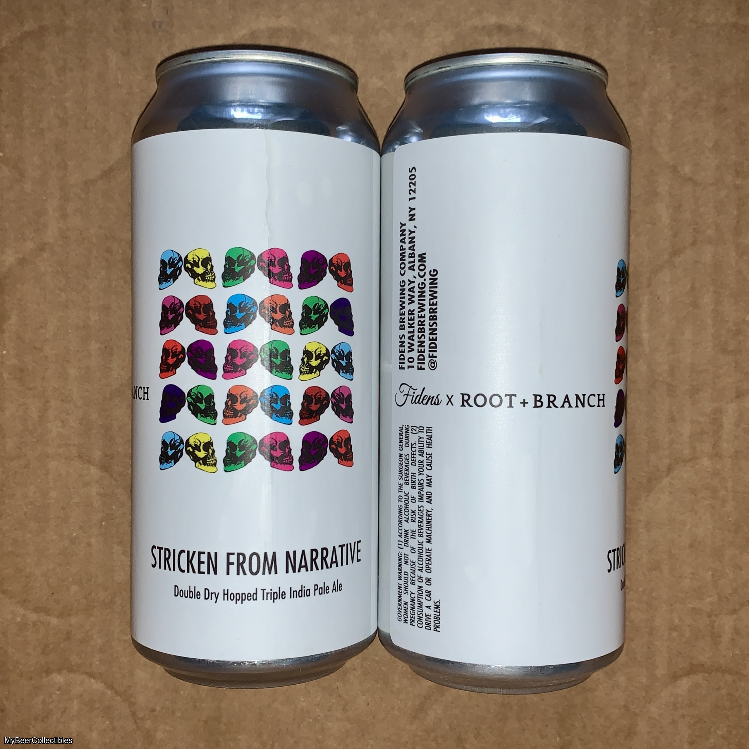 Two Stricken From The Narrative cans from Fidens and Root + Branch.