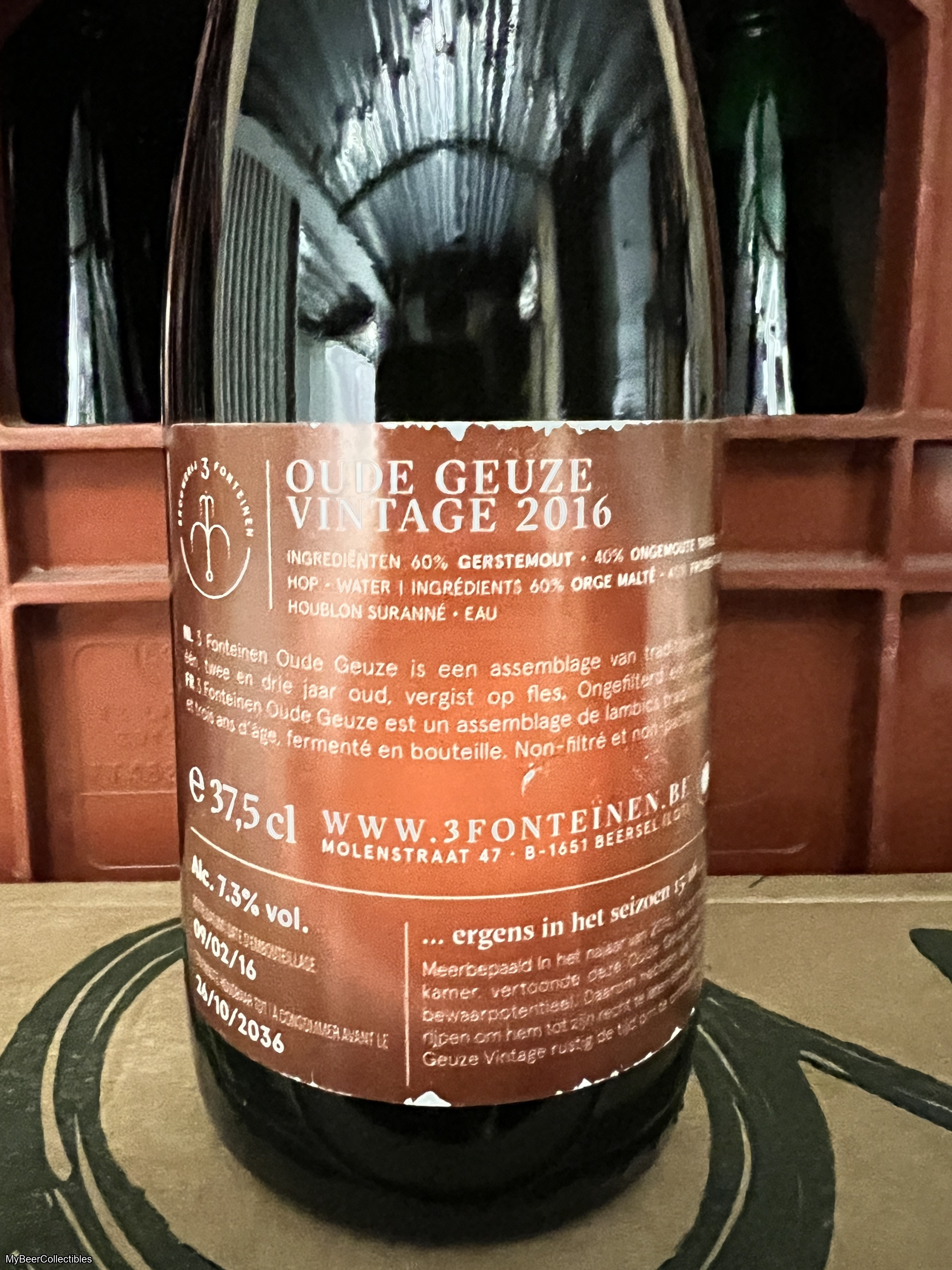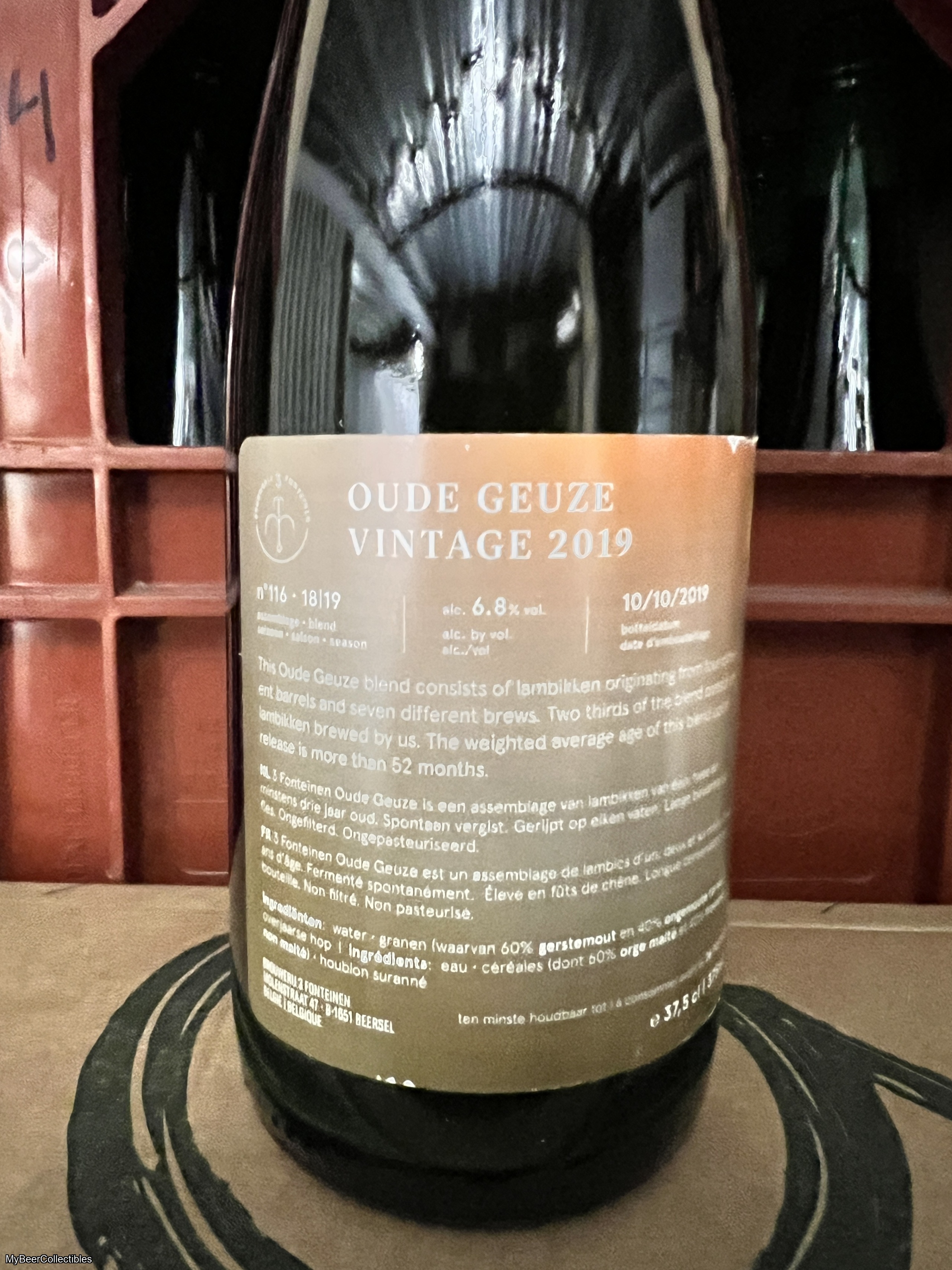 OGV is stored within the cellars at 3 Fonteinen and released several years later instead of being released after the typical maturation period of six months for the regularly released Oude Geuze