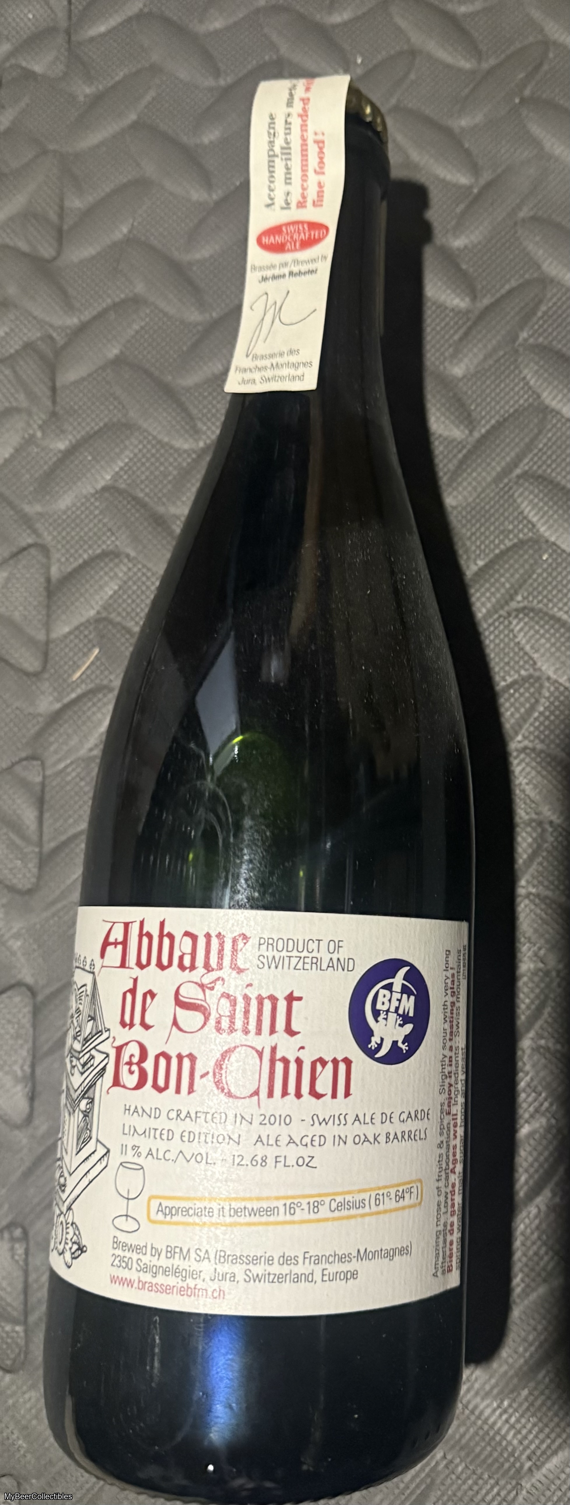 2010 bottle of Abbaye de Saint Bon Chien properly cellared