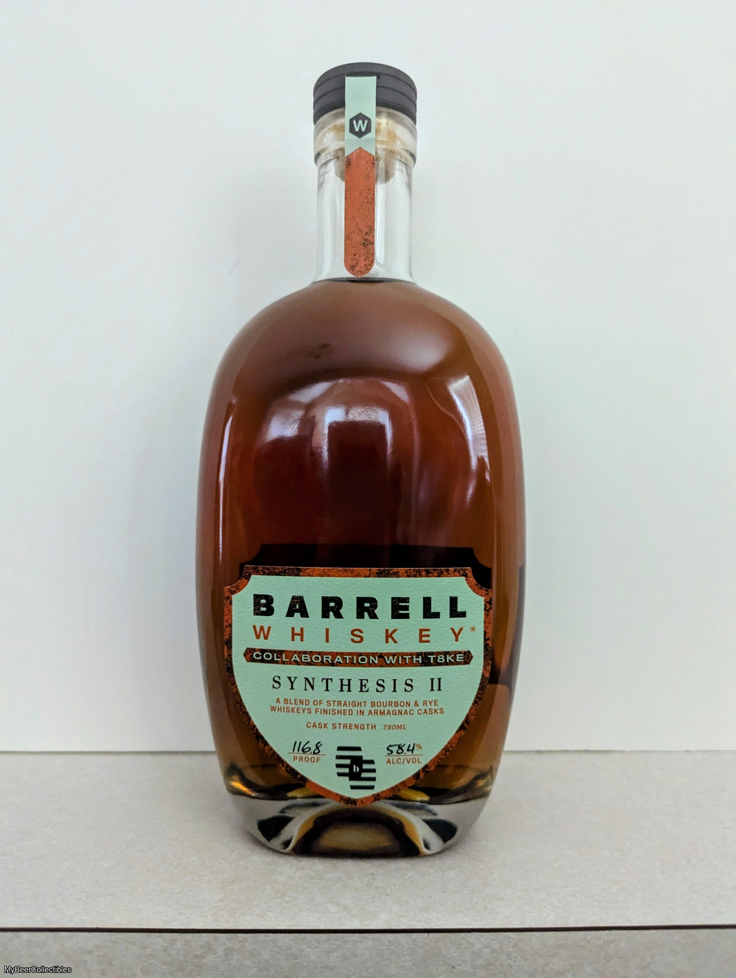 This listing is for one unopened bottle of Barrell "Synthesis II," a bottle made in collaboration with t8ke. Beyond Barrell being an excellent producer and t8ke having excellent taste, this is an exciting batch. Specifically, it's a blend of straight bourbon and rye whiskeys finished in Armagnac casks. 116.8 proof (58.4% alcohol), 750 mL. This normally retails for $130-$150.