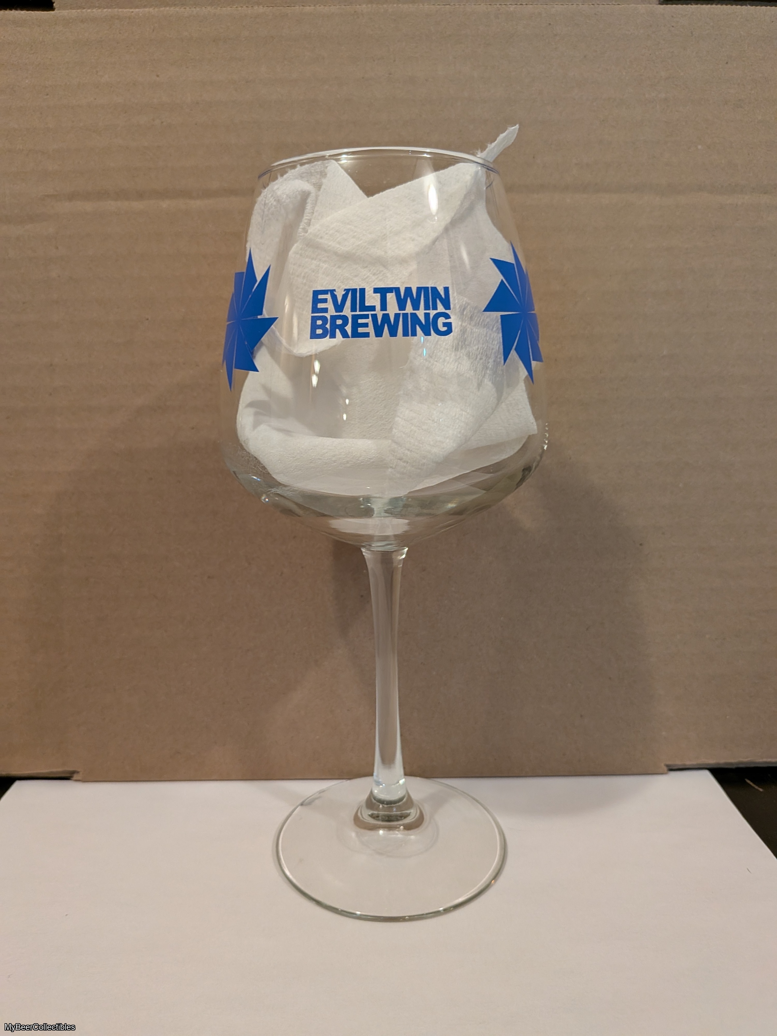 Evil Twin 18 oz. glass. Glassware ships separately from beer.