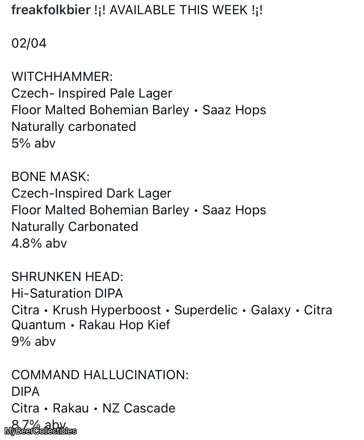 This release includes Czech dark lager / Pale Lager / DIPA / Hi Saturation DIPA. Option of either x1 of each release OR x2 of each DIPA only (Shrunken Head / Command Hallucination). Please specify your custom pack via private message after checkout), or order will default to x1 of each release).