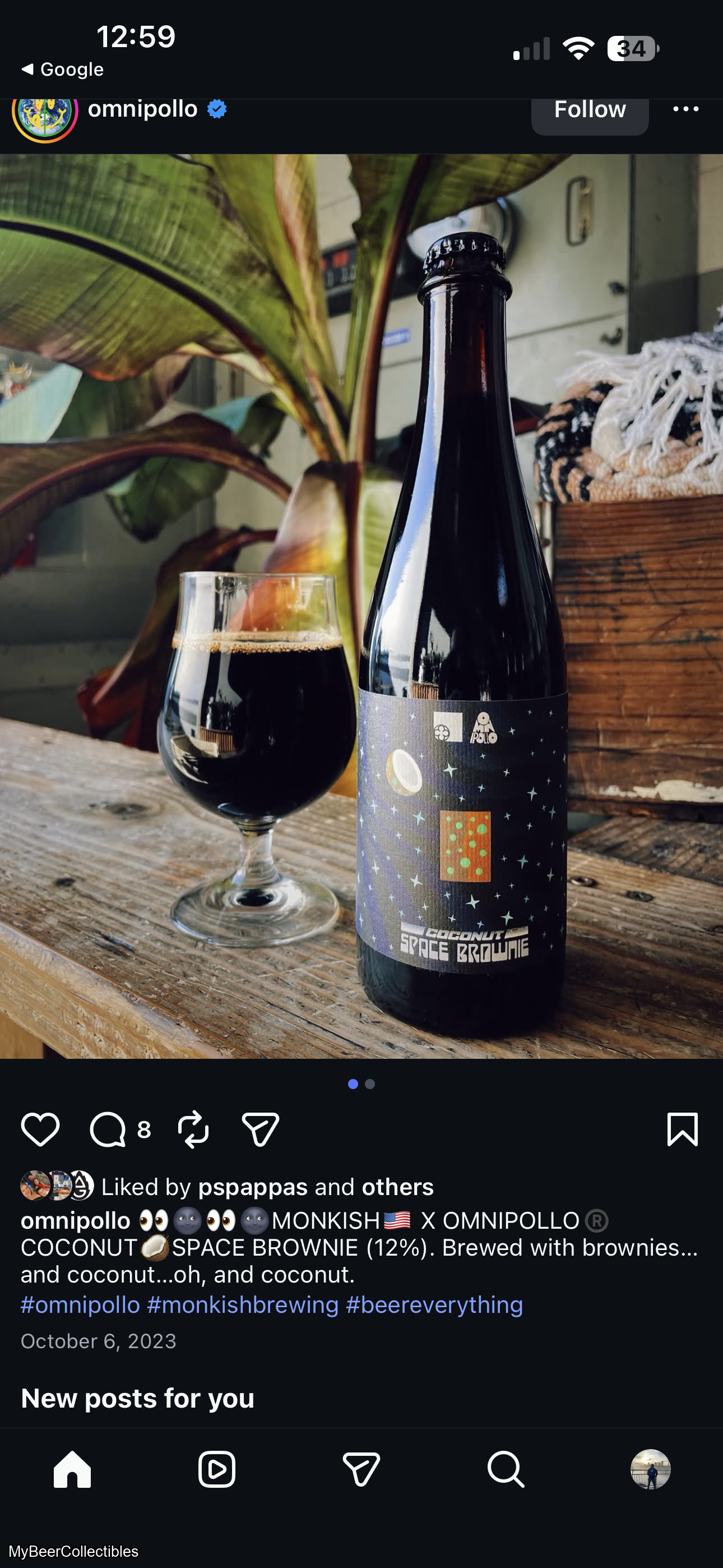 COCONUT SPACE BROWNIE - A collaborative project with @omnipollo. Special Imperial Stout w/ cookies, brownies, milk sugar, vanilla, mash hops, lots of coconut. 12%