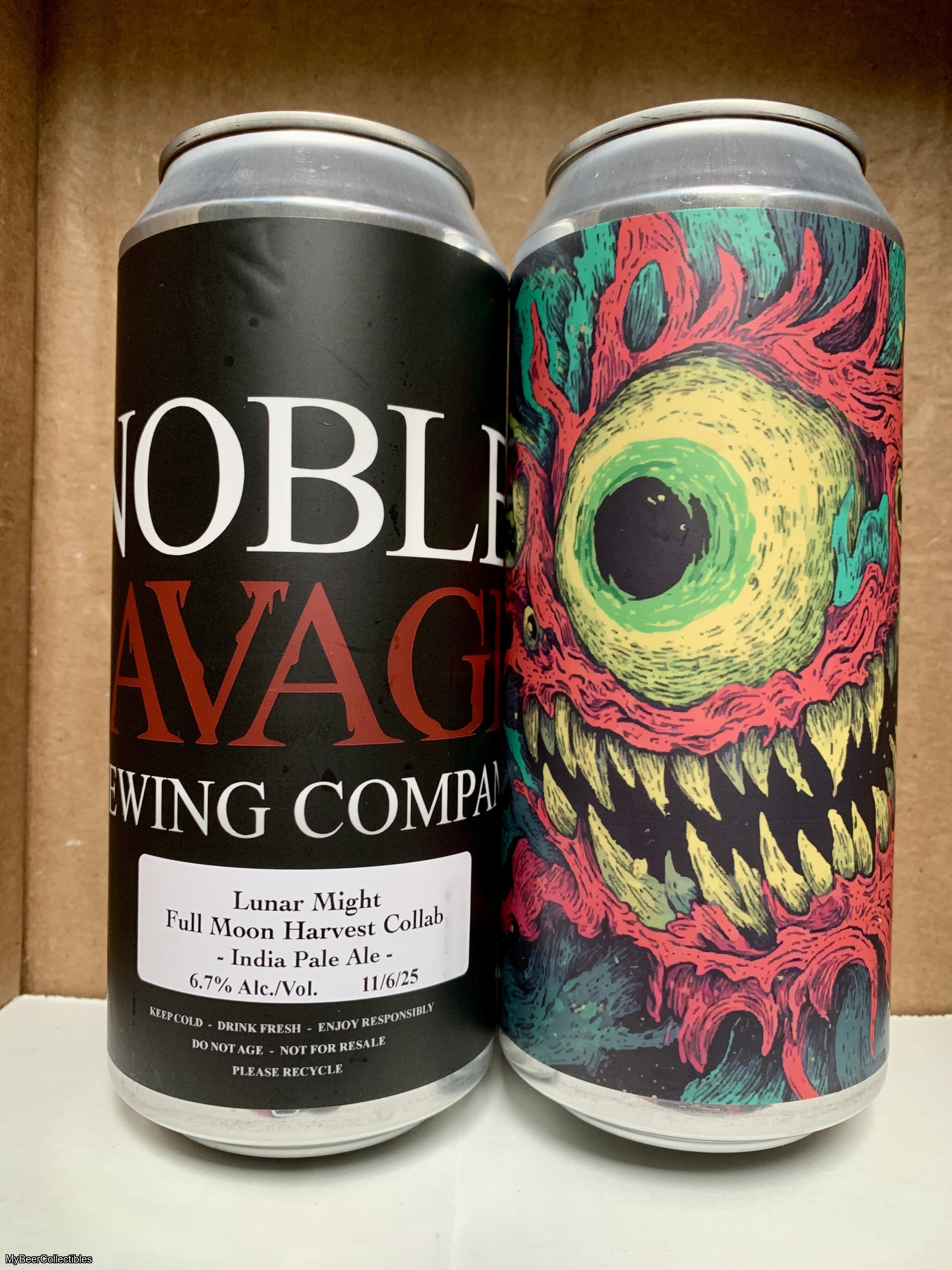 Two different Noble Savage cans, featuring one each of Fuel For Your Dreams (collab w/ RAR), and Lunar Might.