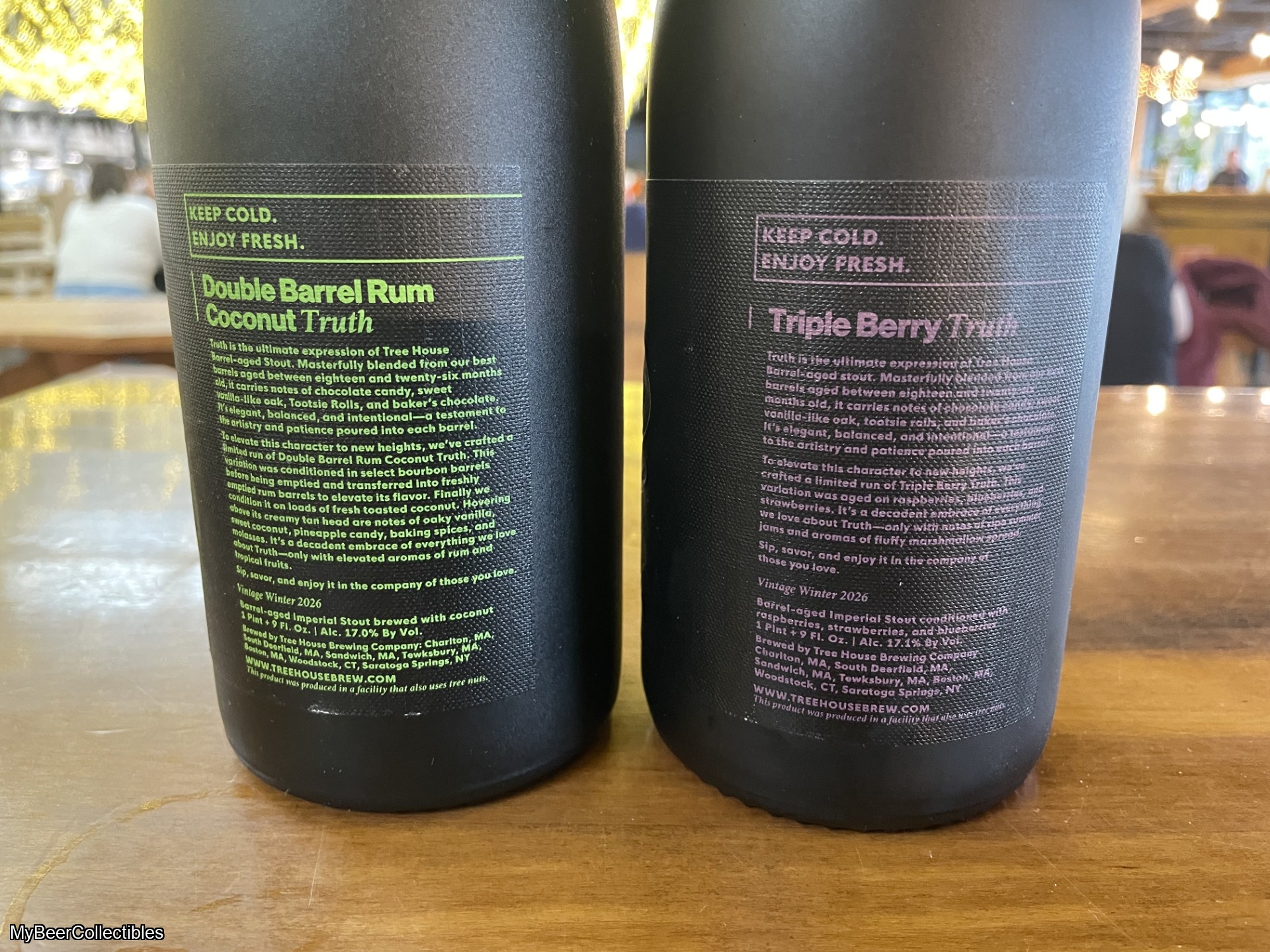 Barrel-aged Imperial Stout, 17.%, 750ml, Truth is the ultimate expression of Tree House Barrel-aged Stout. Masterfully blended from our best barrels aged between eighteen and twenty-six months old, it carries notes of chocolate candy, sweet vanilla-like oak, Tootsie Rolls, and baker’s chocolate. It’s elegant, balanced, and intentional—a testament to the artistry and patience poured into each barrel. To elevate this character to new heights, we’ve crafted a limited run of Double Barrel Rum Coconut Truth. This variation was conditioned in select bourbon barrels before being emptied and transferred into freshly emptied rum barrels to elevate its flavor. Finally we condition it on loads of fresh toasted coconut. Hovering above its creamy tan head are notes of oaky vanilla, banana, pineapple candy, baking spices, and molasses. It’s a decadent embrace of everything we love about Truth—only with elevated aromas of rum and tropical fruits.