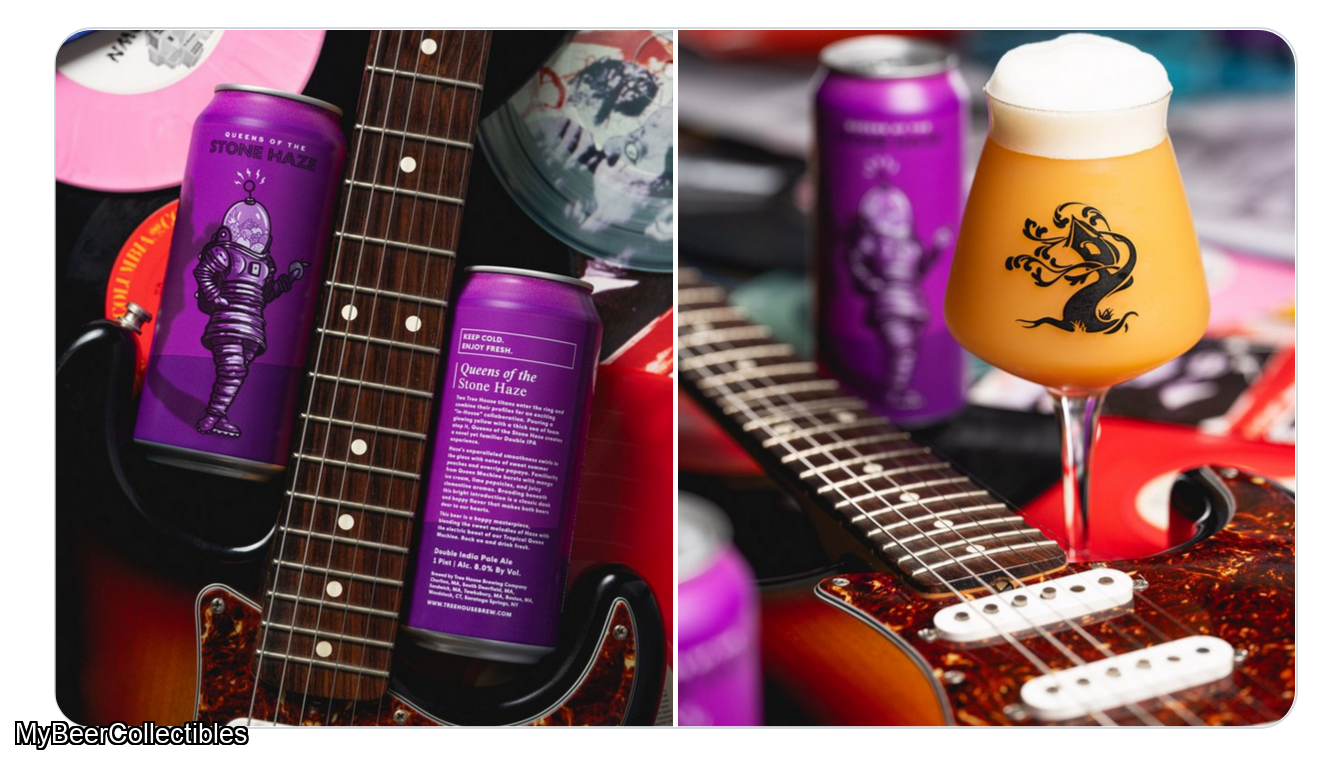 One can of Tree House released Feb 12th 2026(Double IPA, 8%, 16oz) Two Tree House titans enter the ring and combine their profiles for an exciting “in-House” collaboration. Pouring a glowing yellow with a thick sea of foam atop it, Queens of the Stone Haze creates a novel yet familiar Double IPA experience. Haze’s unparalleled smoothness swirls in the glass with sweet summer peaches and dank, overripe papaya notes. Familiarity from Queen Machine bursts with mango ice cream, lime popsicl...